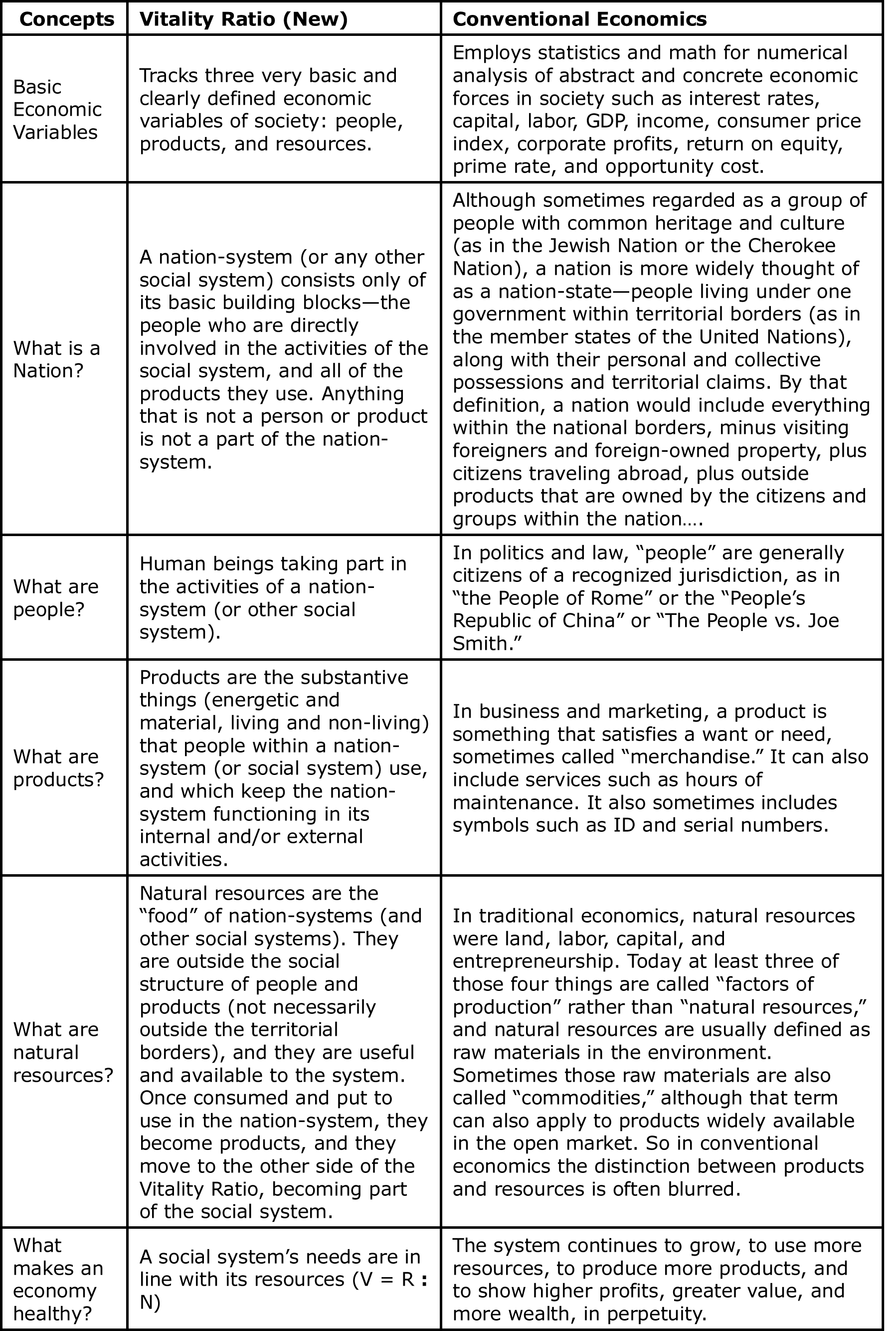 Now we’ll compare conventional economics with new economics made possible by the Vitality Ratio and its related classifications and definitions.