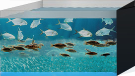 Let’s take a closer look at the bottom of the tank. We notice that some of the fish at the very bottom are so small that they can’t take the pressure down there… and they die.