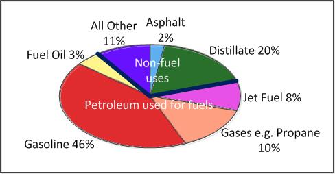 These are just a few of the more obvious symptoms of global warming, which is mainly the result of the burning of fossil fuels… especially petroleum. As you can see in the diagram below, petroleum is used mostly for fuel…