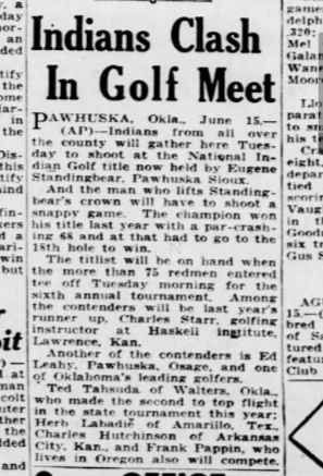 Meanwhile… golf came easy to Eugene. For several years he held the reputation of one of the top competitors on the Indian golf circuit. Every year Indians converged on Oklahoma from all across the country to vie for the Lookout Golf Trophy. Eugene won the trophy two years and was runner-up three times. Every summer he competed in the Broadmoor tournament in Colorado Springs.