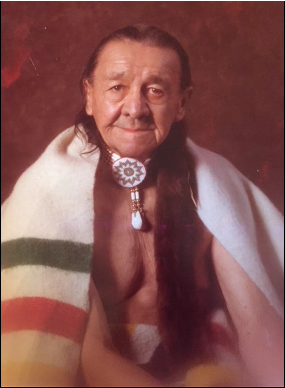 Two revered couples: Eugene’s parents-in-law, Chief Fred and Julia Lookout, flank two good friends of their tribe: Frank and Jane Phillips, .