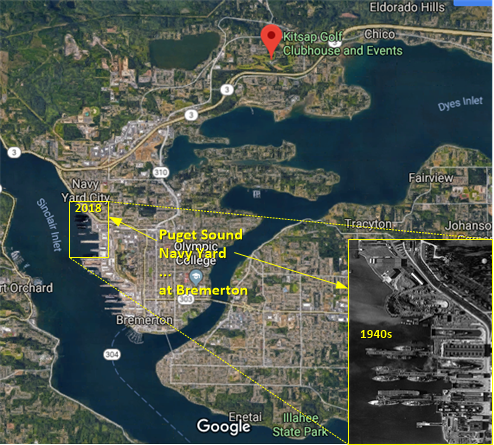 As usual, things fell neatly into place for Eugene as soon as they arrived in Bremerton in 1942. The city was booming. Ships badly damaged at Pearl Harbor the previous year had arrived limping or towed at Puget Sound shipyard at Bremerton to be restored. City population had grown from 15,000 to 80,000 by 1942, bringing a tsunami of wealth to the region.