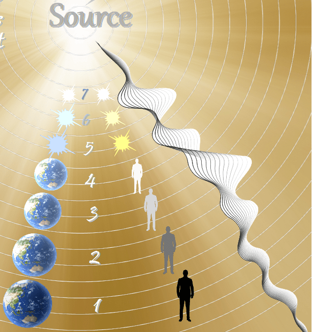 Next leg in the journey will take us into the vast, timeless cosmos where our universe is just one of countless universes that are all superimposed over each other. It’s a realm seen by mystics—an eternal realm of spirits, light beings, and “extraterrestrials.”